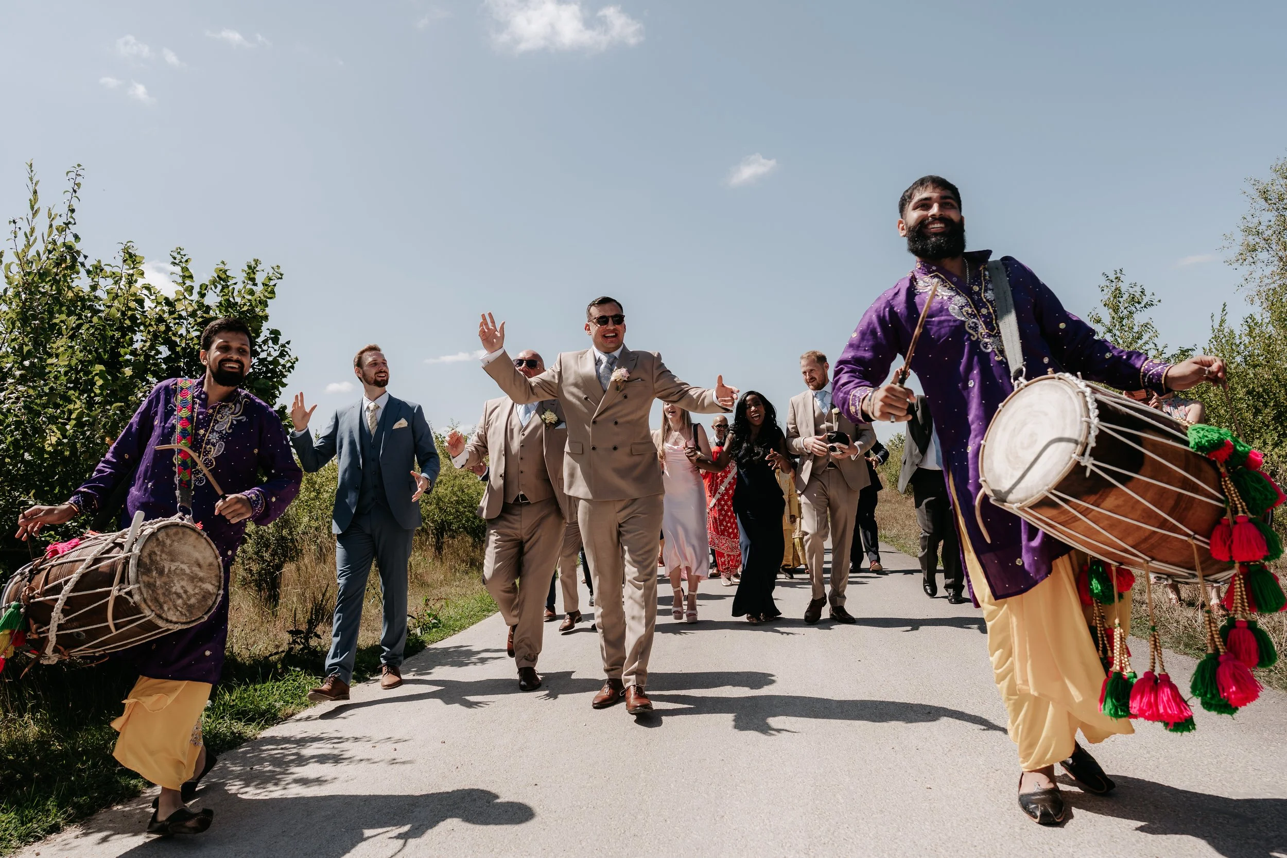 Dhol Drummers marking the groom’s baraat (procession)